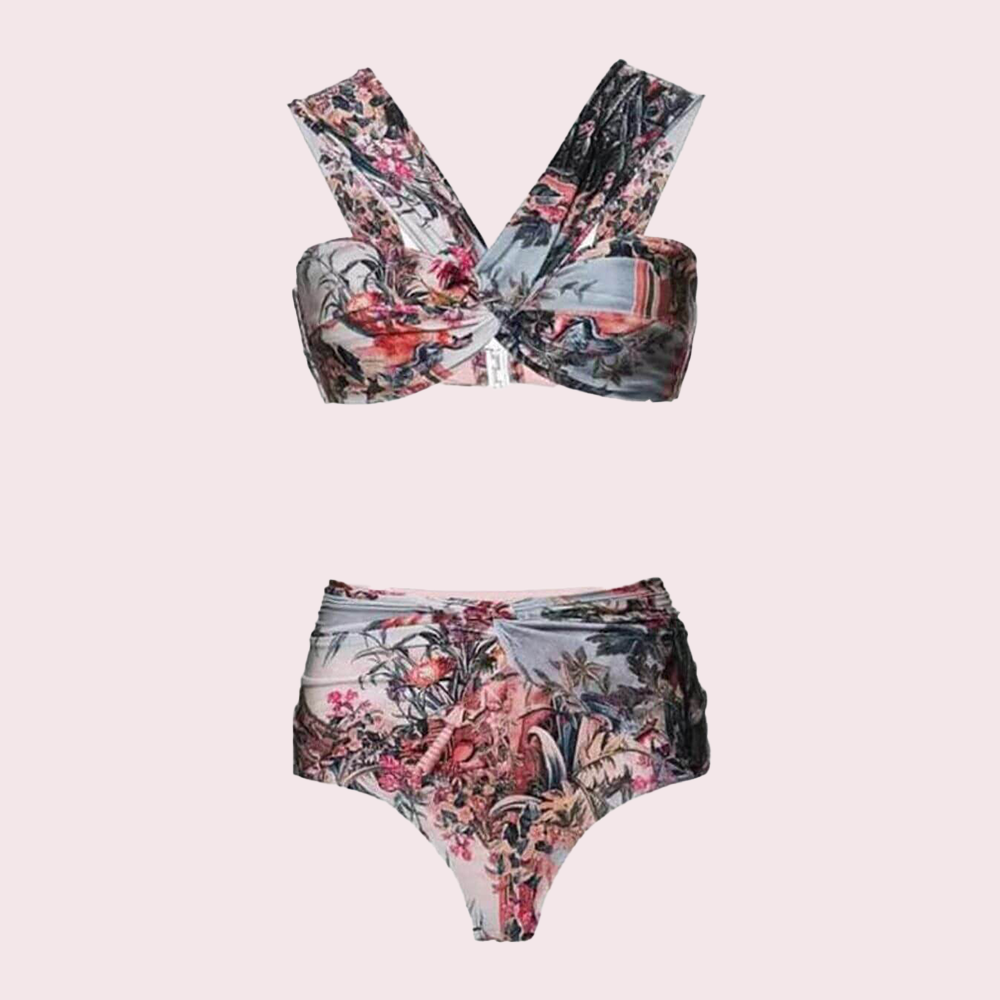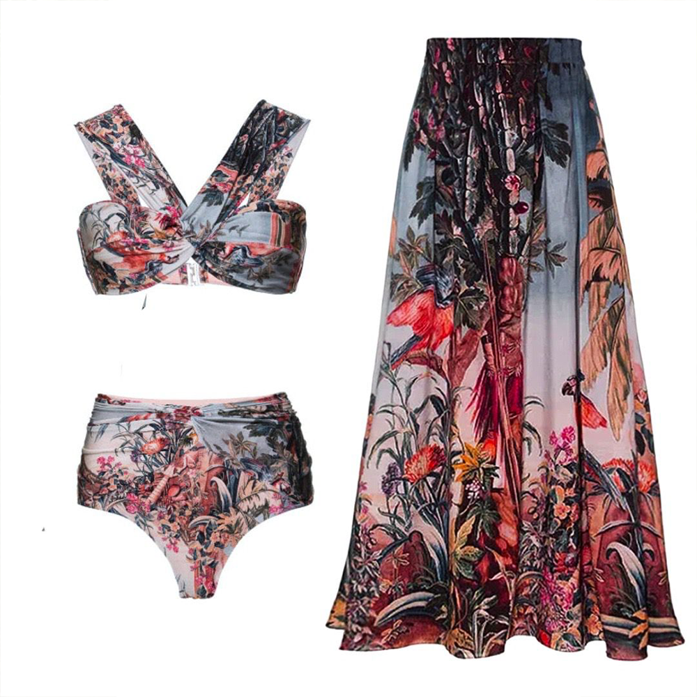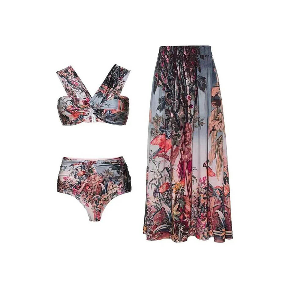 Get ready to turn heads in this tropical print bikini with skirt perfect for your next beach holiday or pool party. It offers both comfort and fashion in one